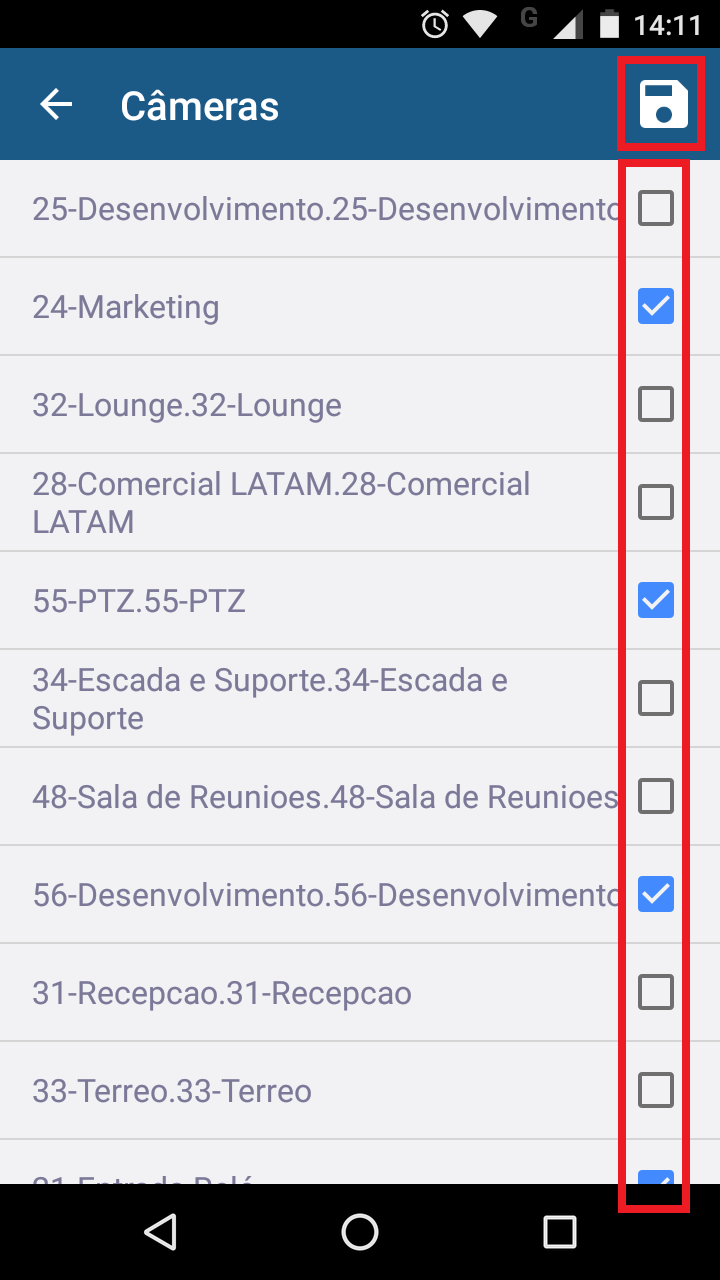 6 – Após definir o número de câmeras para abertura inicial e clicar no ícone da Câmera, escolha quais câmeras serão abertas e clique no ícone do disquete para salvar: